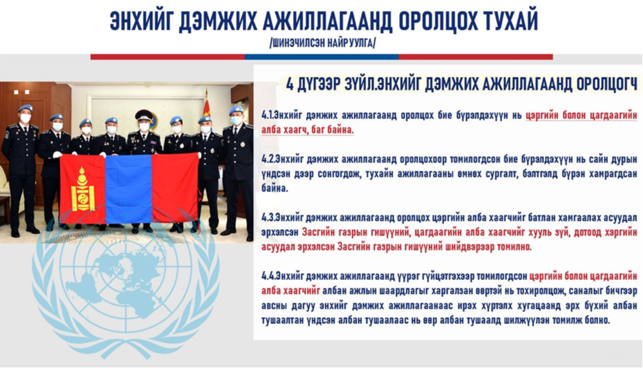 НҮБ-ын энхийг дэмжих ажиллагаанд оролцох цагдаагийн багт үүрэг гүйцэтгэх алба хаагч сонгон шалгаруулалт